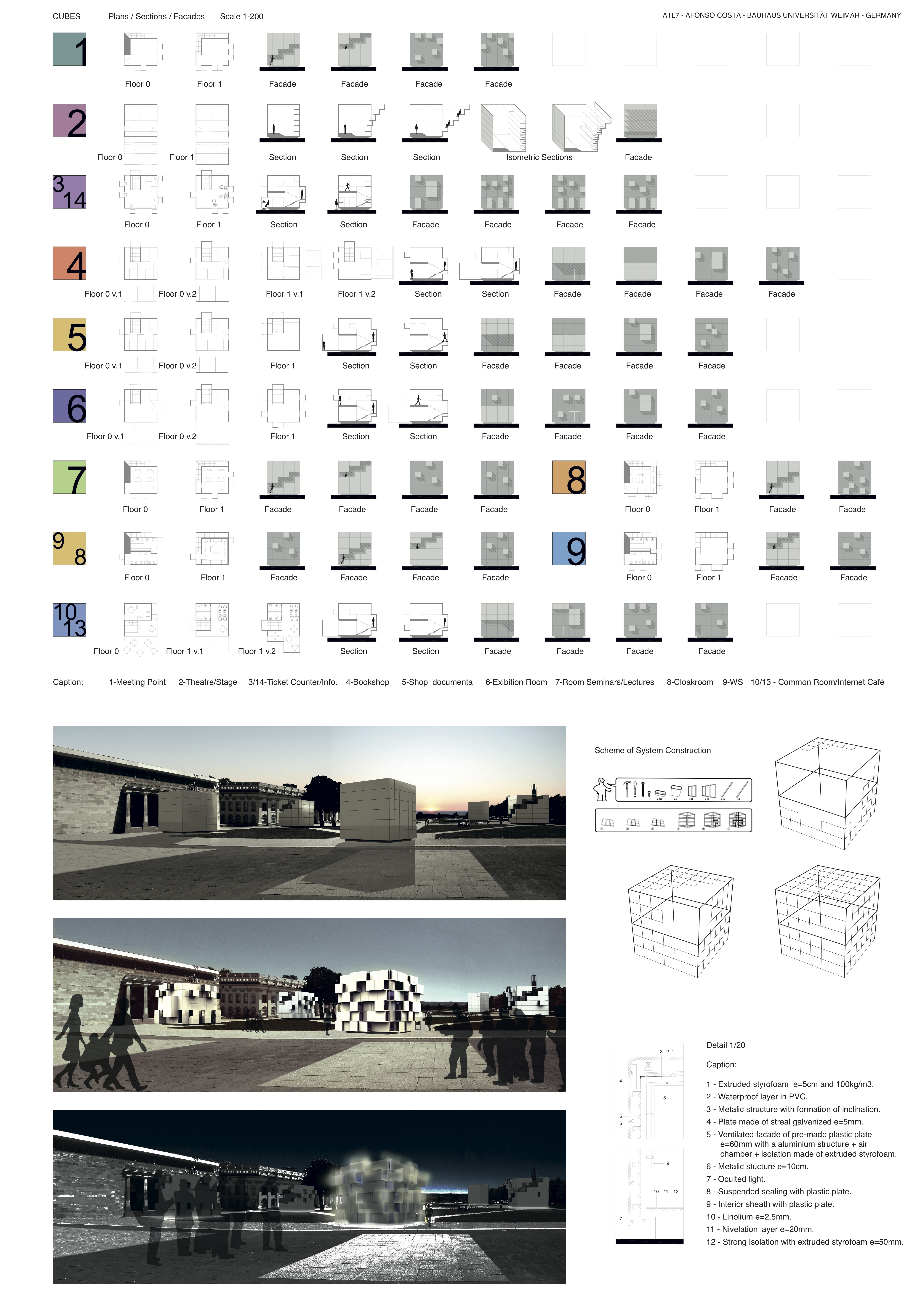 Baseado na pixelização do jogo “Space Invaders”, o projecto cria um conceito de um sistema modular para gerar o conteúdo programático, começando com um cubo de 6 metros